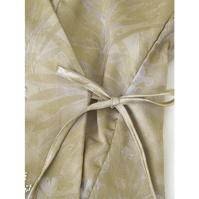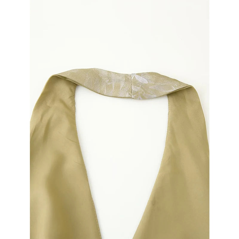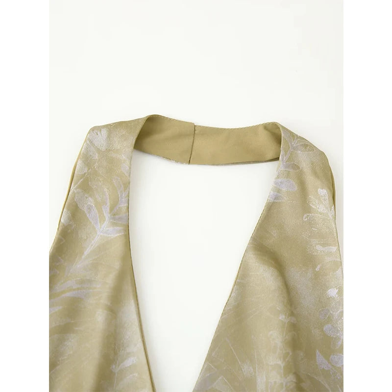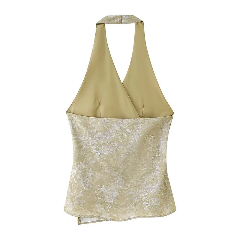 The Carol // Top is a sophisticated halter-style wrap top featuring delicate botanical embroidery and beaded embellishments. The elegant V neckline and tie-side closure create a flattering, adjustable fit—perfect for warm evenings, elevated events, or pairing with high-waisted trousers for a chic daytime look.