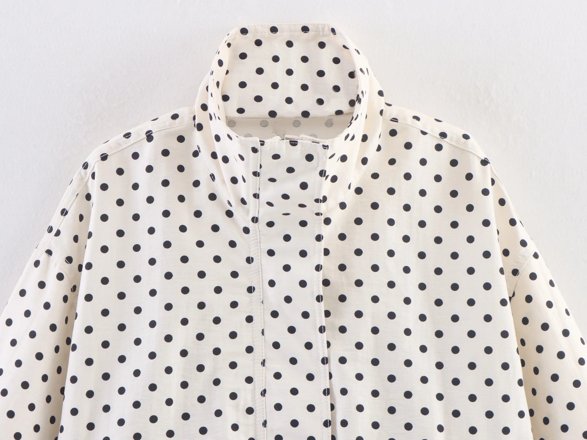 The Meli // Jacket is a lightweight, windbreaker-style jacket with an all-over polka dot print. Featuring a zip-up front, drawstring hem, and oversized fit, it’s perfect for layering with casual or statement pieces. Designed with dropped shoulders and roomy sleeves for extra comfort.